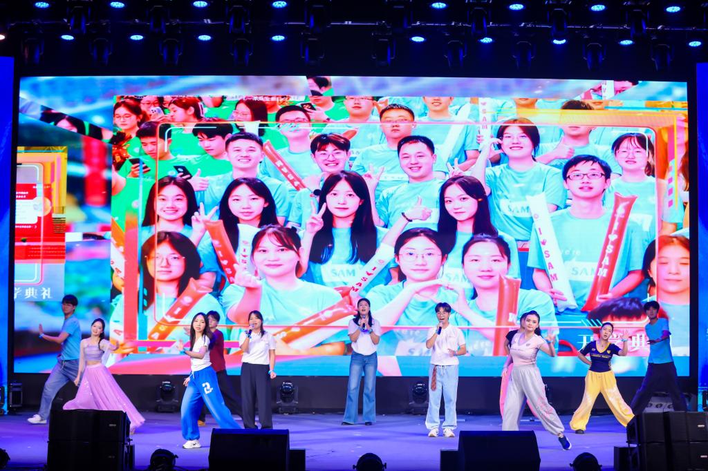 The song and dance performance "New Materials Rhythm, Marching with Musical Dreams," from the School of Advanced Materials, energized the crowd with its youthful melody and dynamic dance moves. The performers used their voices and dance steps to express their passion and hopes for the future. Bright, vivid images flashed on the screen behind them, with youthful smiles interacting with the stage lights, creating a jubilant atmosphere.