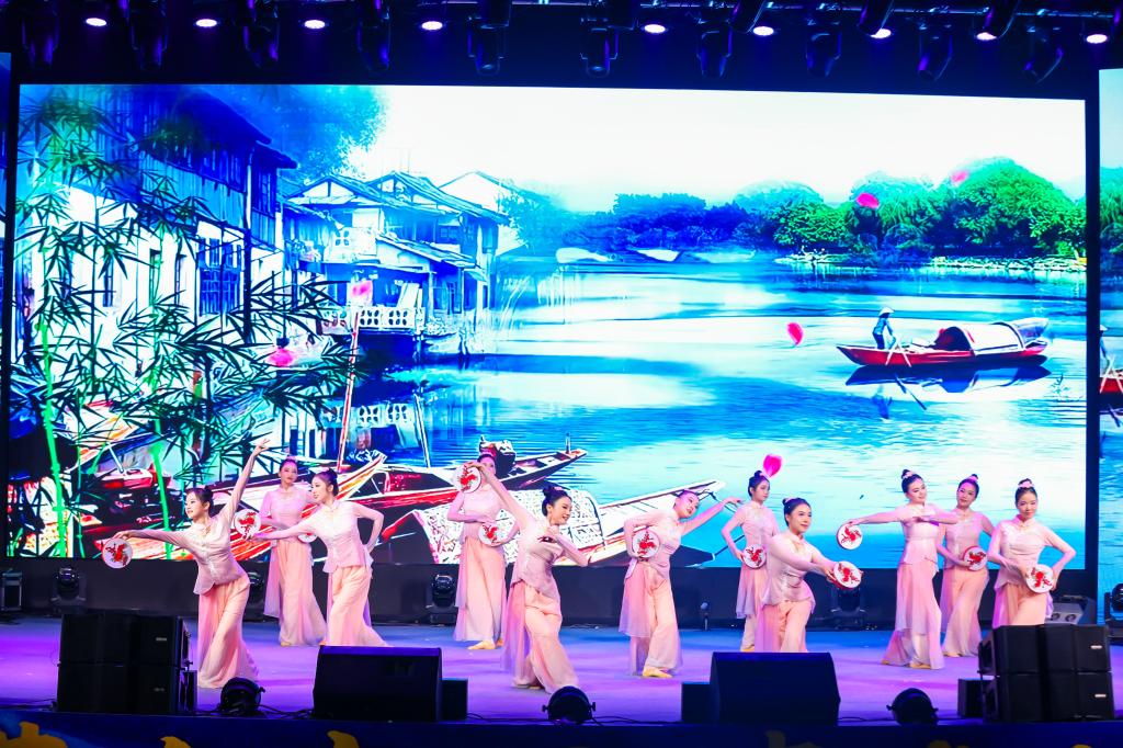 Students from the Student Art Troupe Dance Team performed the ethnic dance "The Beauty of Cantonese Embroidery." Dancers in elegant, graceful costumes took the stage slowly holding embroidered fans. Their light steps, elegant postures, and nimble fan movements wove together into a flowing poetic picture of Lingnan, showcasing the delicacy of Cantonese embroidery and the soft beauty of Eastern dance.